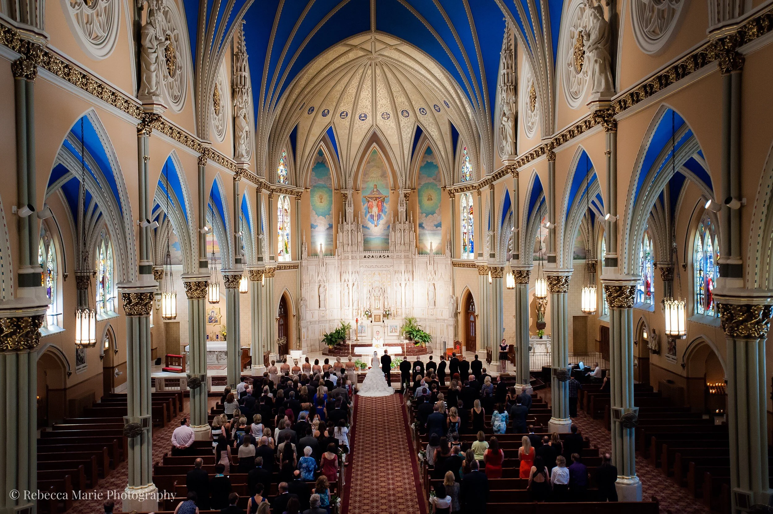 Most churches have set times for wedding ceremonies on Saturday, often 1pm, 3pm, and 5pm, but be sure to ask. Some churches have Friday and Sunday options as well, but less so because of their scheduled church services. If you get married earlier, like 1pm, you do not need to do a first look because you’ll have time in between your ceremony and reception. This also leaves enough time for guests to hang out in the city or go back to their hotel before the reception. If you choose (or are given) the 3pm ceremony, consider having an earlier start to cocktail hour so guests can leave from the ceremony and family formals and go straight to the reception space. You should factor getting to the church about 30-45 minutes before your ceremony to get situated and leave 30 minutes for family formals at the altar after.